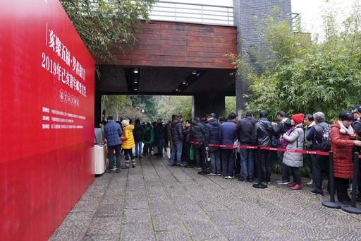 1月5日,浙江杭州烟雨濛濛,广大集邮爱好者在位于西子湖畔的韩美林艺术馆前排起了长队(图)。当天,韩美林艺术馆举办了《己亥年》邮票首发式,“‘猪’事大吉”己亥年生肖画展开展,集中展示韩美林先生融合传统水墨和现代水彩画效果于一体的作品。
