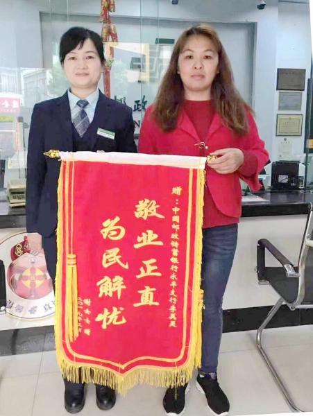 在收到第三方支付平台退回的资金后,谢女士对李美灵和邮政员工全心全意为客户服务的精神感到十分的敬佩。3月4日当天,她特意制作了一面锦旗和写了一封感谢信,送到永丰营业所对李美灵和全体邮政工作人员表示感谢。她说,这件事情让她感到了邮储银行是一家真正视客户为亲人的银行,把钱存到邮政非常放心。