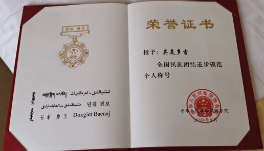 四川省甘孜藏族自治州甘孜县邮政分公司长途邮运驾驶员其美多吉荣获全国民族团结进步模范个人称号,习近平总书记亲自为其美多吉颁发奖章和证书。