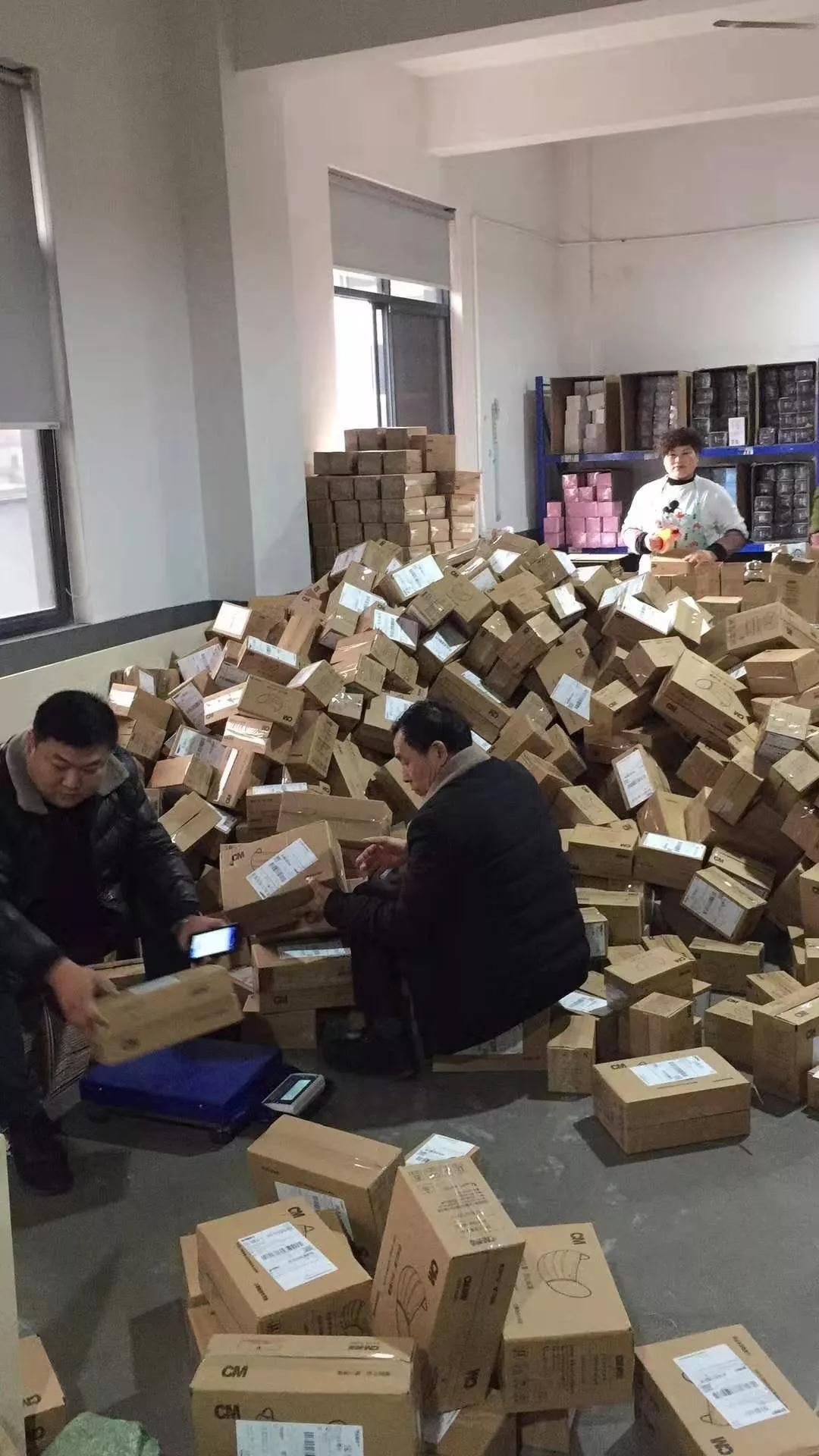 21日当天,建德市分公司寄递部的负责人、各板块经理及相关管理人员分别前往营业部和邮件处理场地帮忙,驻扎在生产车间打包、扫码、收件,在处理场地上帮忙卸货、上货。为确保当日订单能够全部发出,杨村桥营业部临时从其他营业部借调3辆邮车驻扎在朝美公司,一车装满立即开走,由于洋溪邮件处理中心场地邮件饱和,便第一时间联系桐庐,直接在桐庐场地进行装卸处理。在新安江营业部,也将原先的小面包车换成了大的邮车,团队7人加上帮扶人员4人从早上开始手上活就没停,甚至连吃中饭、喝水的时间都没有,寄递部市场部经理叶淑敏作为帮扶人员中唯一的女将,跟其他男同事一样帮忙打包、贴单,一站就是几个小时,晚上一回到家腰就不是自己的了。