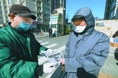 出发前,侯毅就给卢老打了一个电话,通知他报纸10分钟之后送到。卢老接完电话就下楼等着了。自从社区封闭后,侯毅和很多订户都形成了默契,电话里一句“您好,我是小侯!”电话那头马上就会意了。