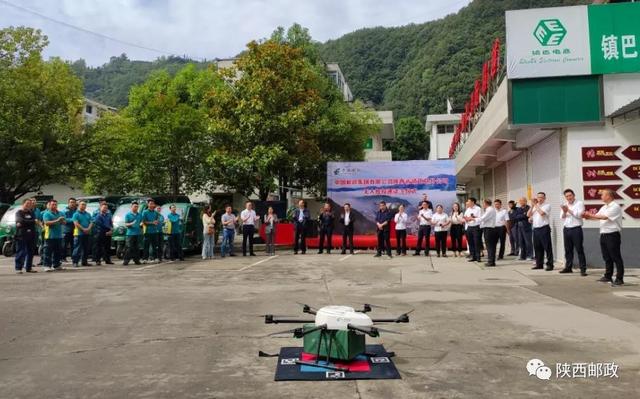 9月17日上午10点,陕西邮政首条无人机邮路“镇巴-草坝”开通仪式,在汉中镇巴分公司院内举行。