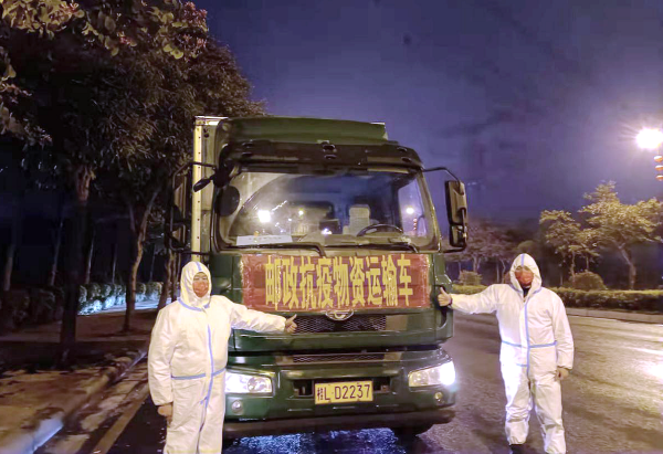 2月12日上午,接百色市疫情防控指挥部的指令,田东县邮政分公司和凌云县邮政分公司相关人员组成运输队,将22件抗疫物资安全运送至靖西市指定接收点;完成物资交接工作后,他们又连续作战,驾车将7.5吨大米及23件防疫物资运送往德保县。