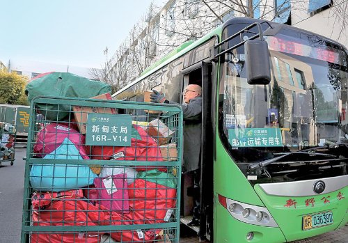 “每天利用城乡公交运送邮件5000余件。”新野县分公司副总经理胡恒说。目前,新野县分公司开通了5条“客货邮”线路,覆盖全县12个乡镇,每天每条线路公交往返两个频次。在运送快递邮件的同时,也让农户的牛羊肉、杂粮、瓜果、蔬菜等特色农产品走向更广阔的市场,打通了乡村物流末端环节,不仅实现了邮政快递和客运企业降本增效,也为广大农户带来实实在在的效益,促进了农民增收。