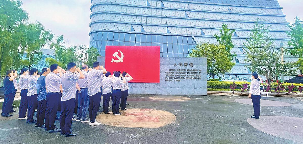 日前,浙江省慈溪市邮政分公司党委组织全体党员前往市城市展示馆,参观“镜·鉴”——宁波市党员干部违纪违法典型案例警示教育展及“中国共产党人的家风”档案展,沉浸式接受廉政警示教育。党员们纷纷表示,要以案为鉴,汲取教训,始终坚定理想信念、严守纪法底线、坚守道德高线,始终做到自重、自省、自警。图为参观结束后,全体党员在广场上集体重温了入党誓词。