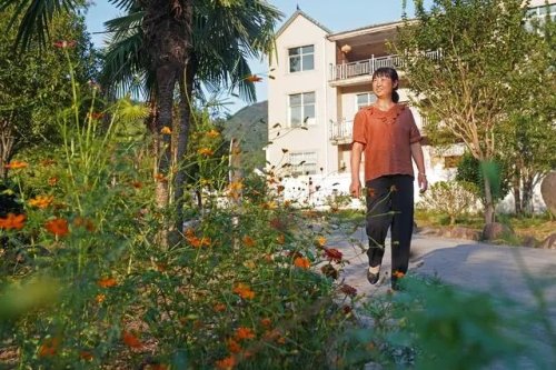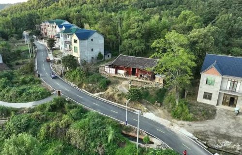 沿着盘山公路上行,汽车开进了沽溪村。群山环抱着整齐的新楼房,鲜花点缀在整洁的村道两旁,村民在院子里晾晒收获的稻谷。