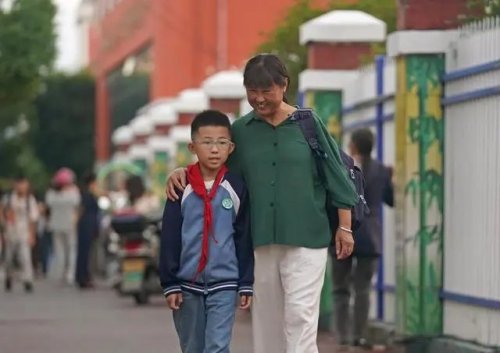 这是在江西省铅山县县城,罗细英(右)接外孙放学(9月27日摄)。新华社记者 万象 摄