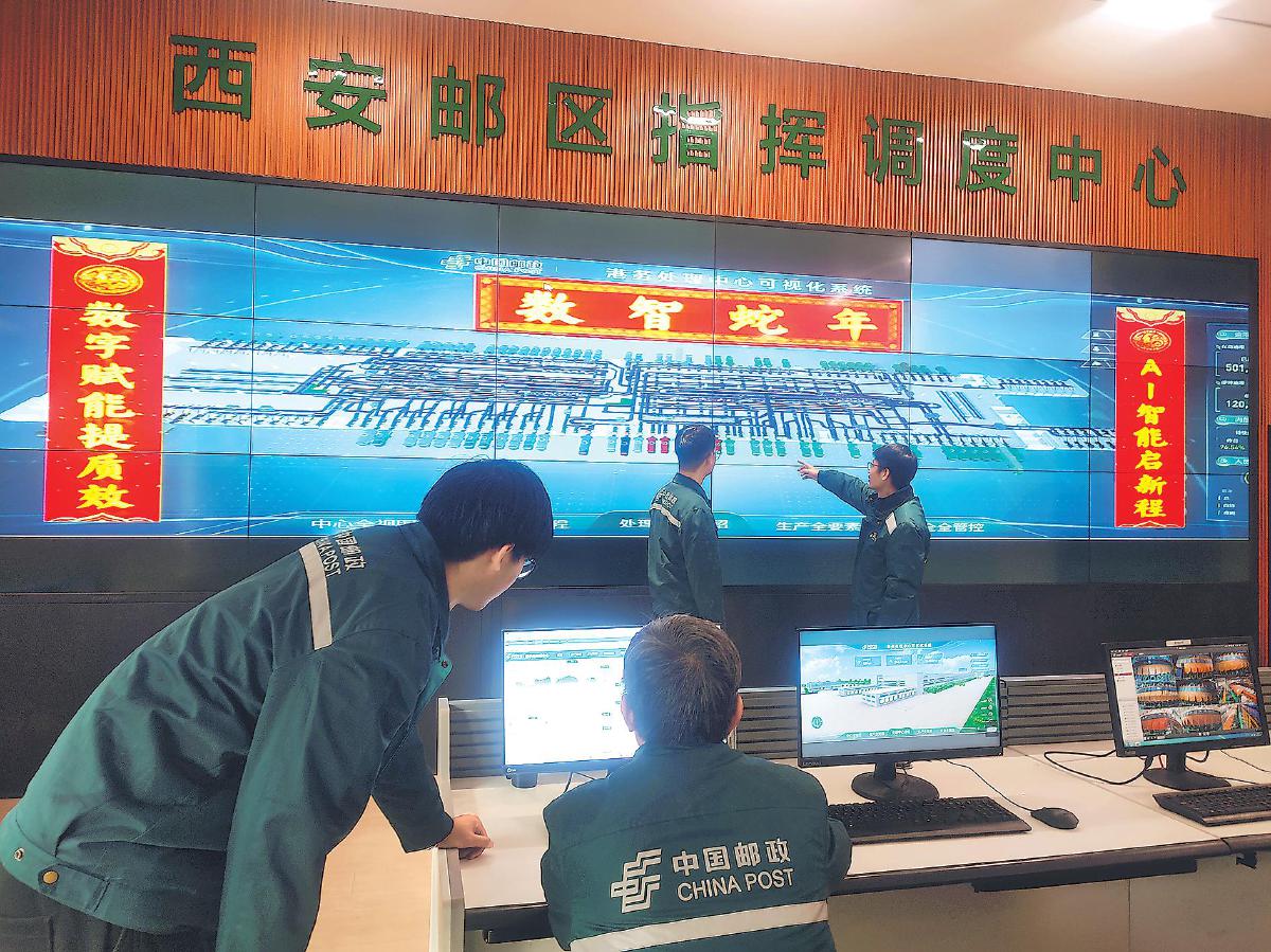 西安邮区中心使用数字化系统强化管控能力,确保春节期间生产顺利进行。 □王永盛 摄