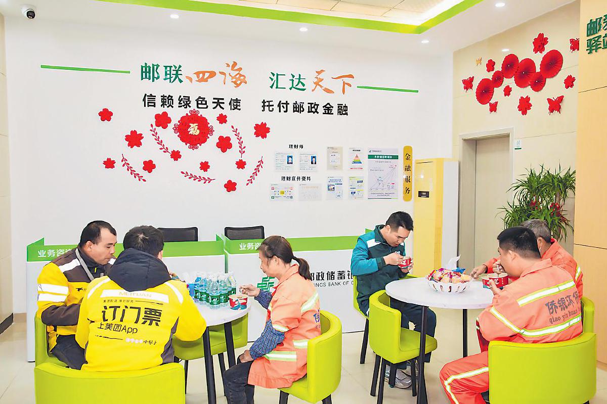 日前,在邮储银行广东省茂名市城区支行,一个冷可取暖、热可纳凉、渴可饮水、累可歇脚、雨可栖身的24小时智能化邮爱驿站暨工会驿站揭牌并投入使用。