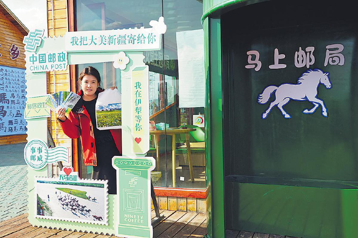 在昭苏县天马文化园,主题邮局以丰富多彩、独具创意的文创服务为游客留下美好回忆。